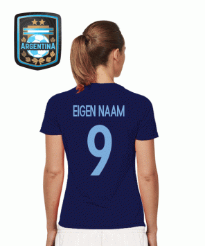 Navy dames HQ replicashirt van Argentinie met eigen naam opdruk in cornflower blue.