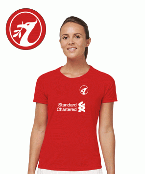 Rood HQ replica dames shirt van Liverpool met Gakpo opdruk in wit.