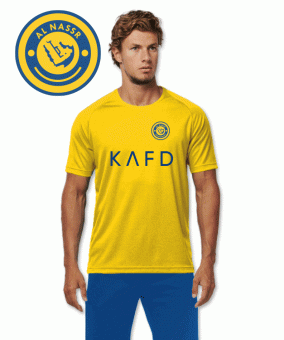 Royal HQ replica shirt van Al Nassr met Ronaldo opdruk in geel.